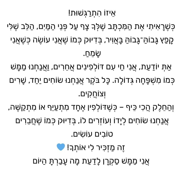 "זה התחיל במקרה, מהשאלה שחזרה על עצמה כל בוקר: 'אמא, הגיע גם לי מכתב?' כשראינו את הניצוץ בעיניים של הילדים בכל פעם שגילו מעטפה שמיועדת רק להם, הבנו שיש כאן קסם שחייבים להפיץ הלאה.
